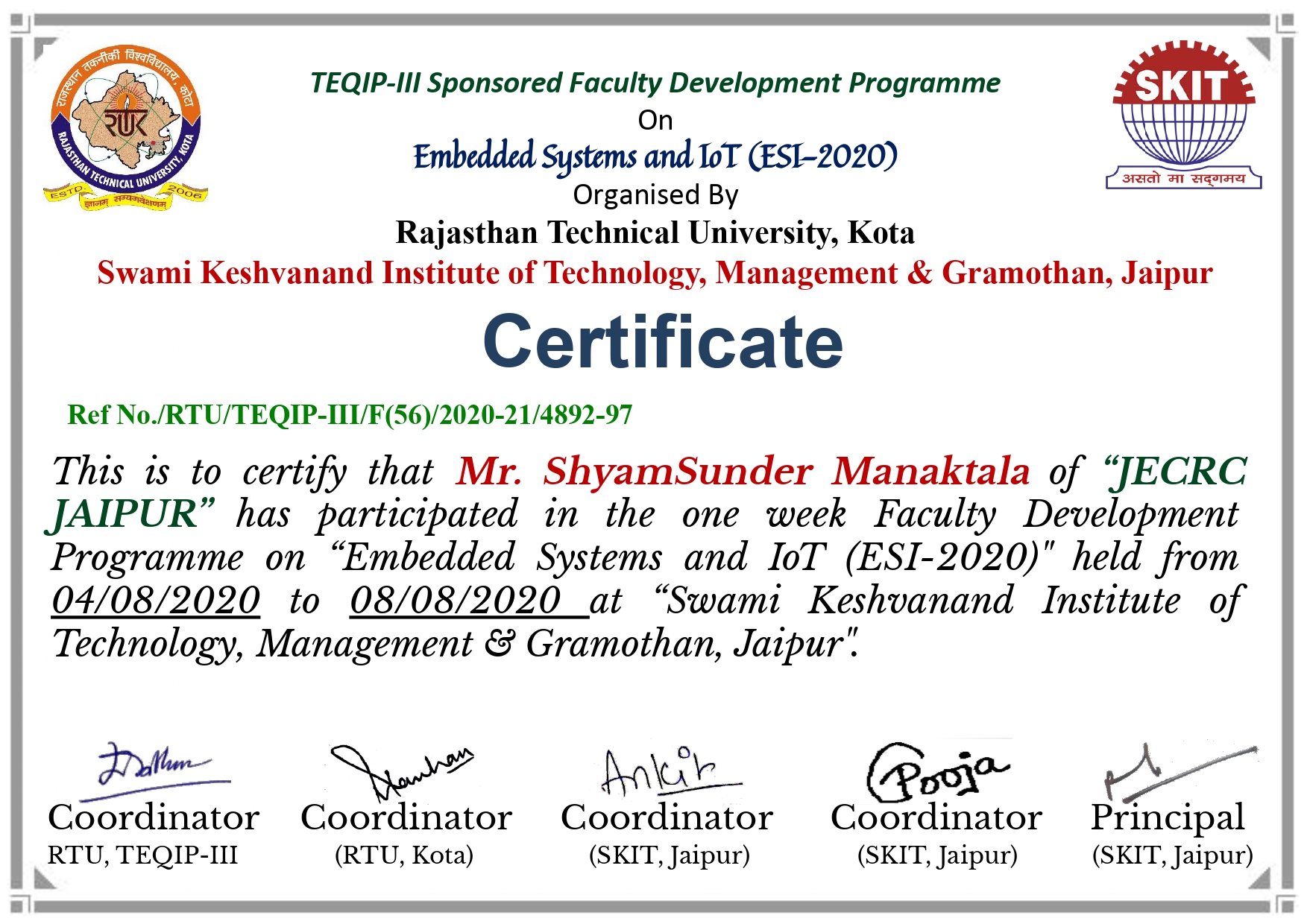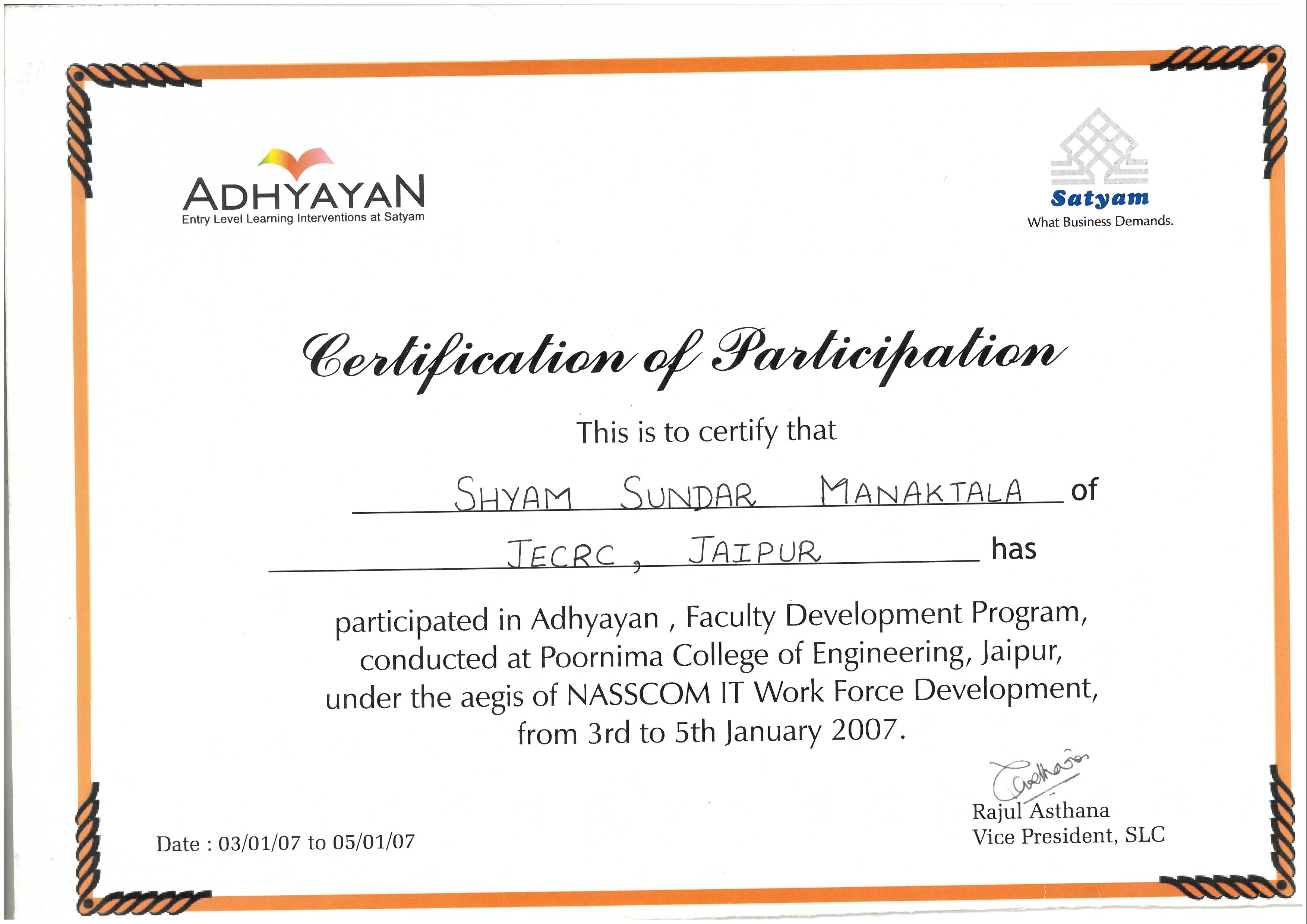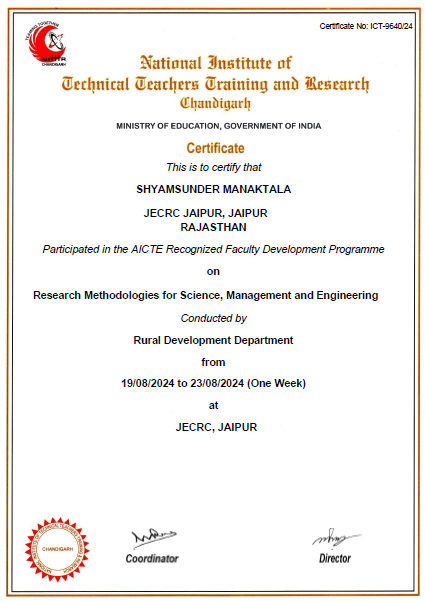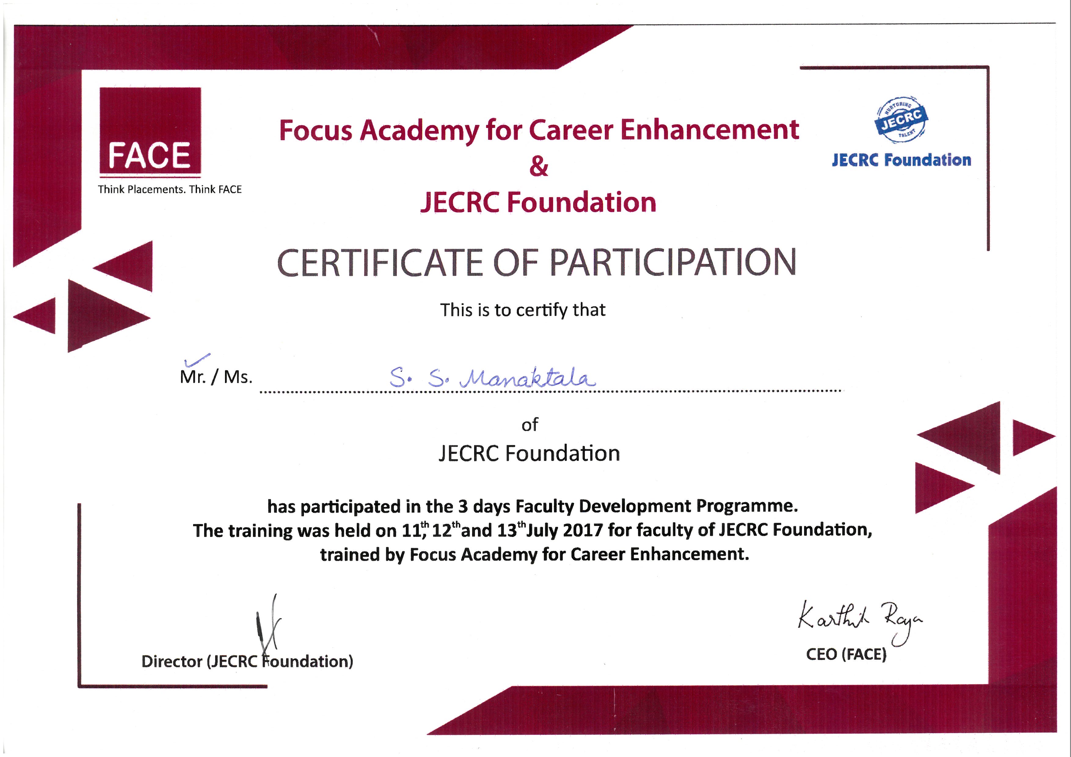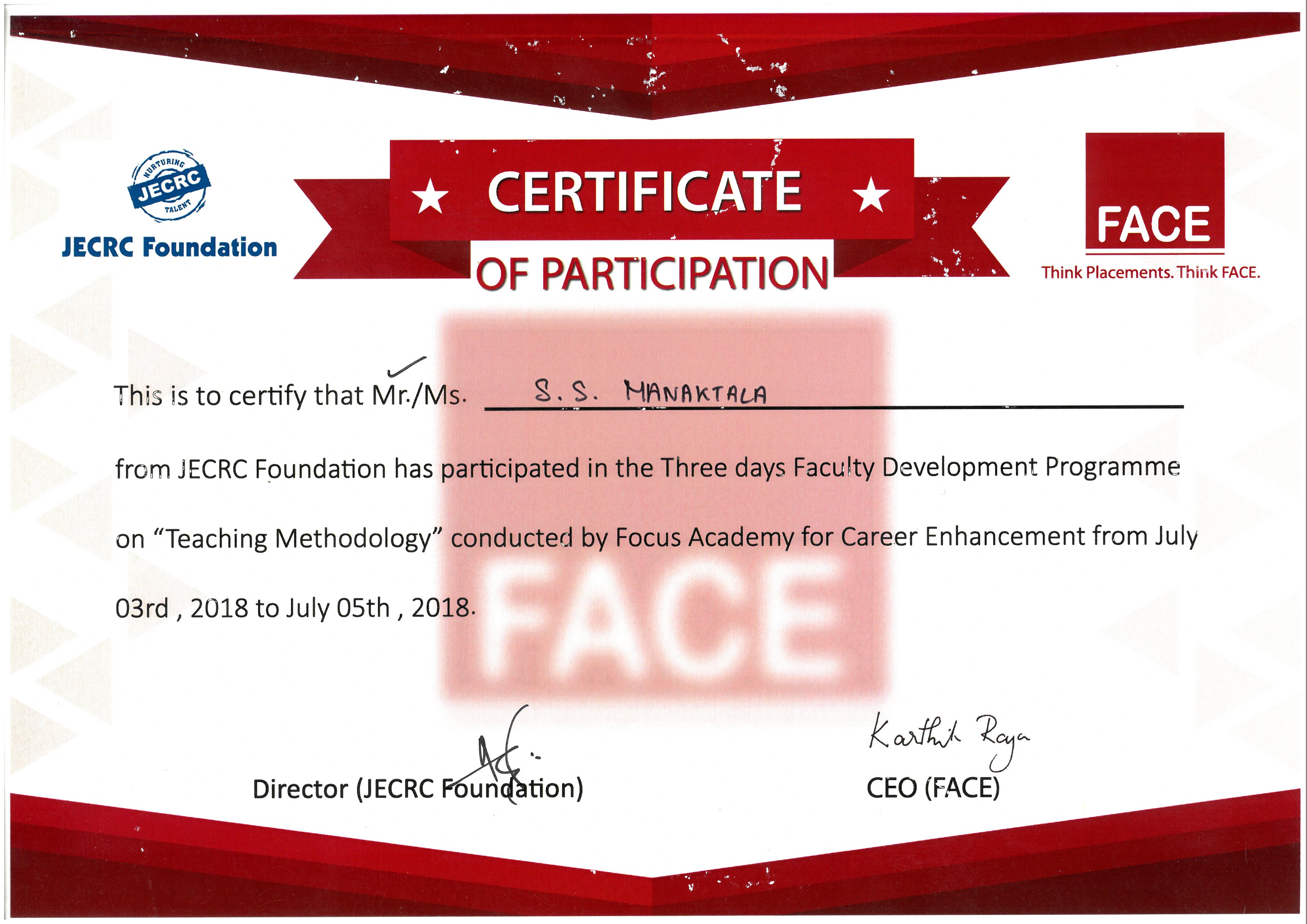 Participated in 3 Day Faculty Development Program on Teaching Methodology