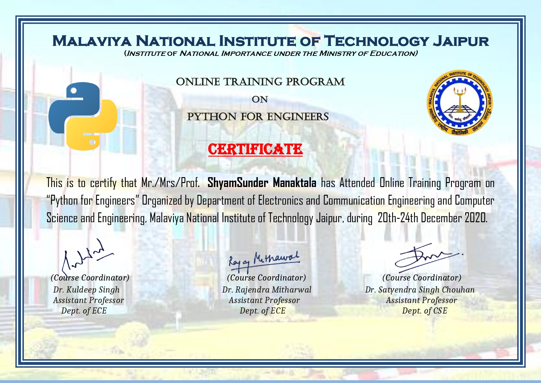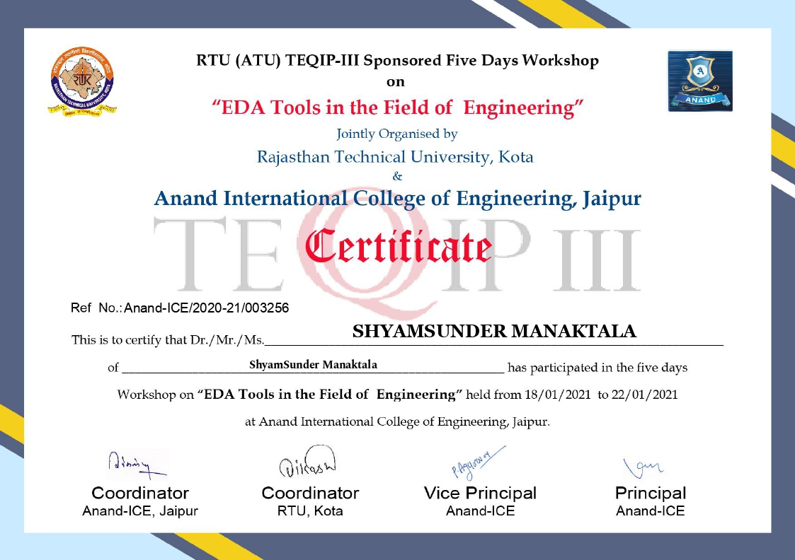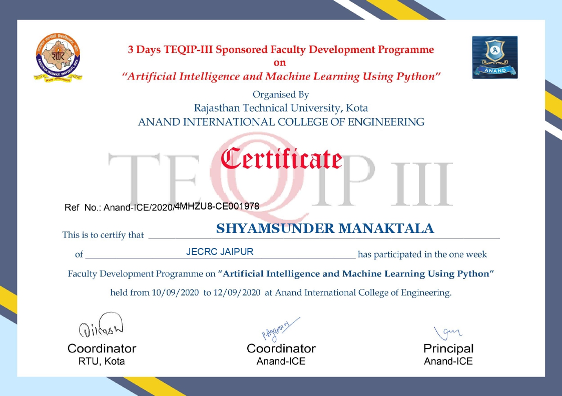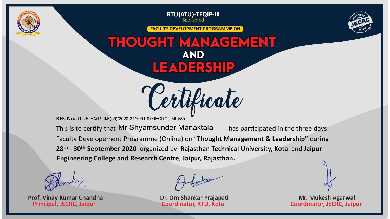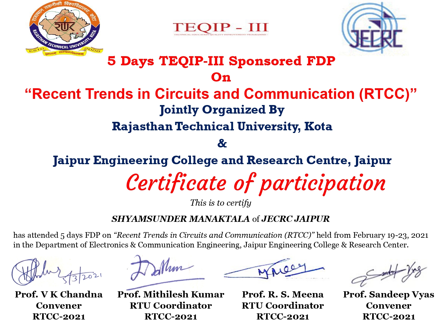 Participated in 3 Day Faculty Development Program on Teaching Methodology