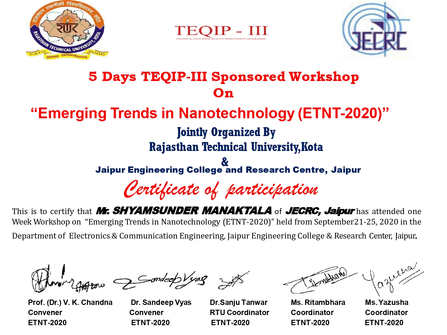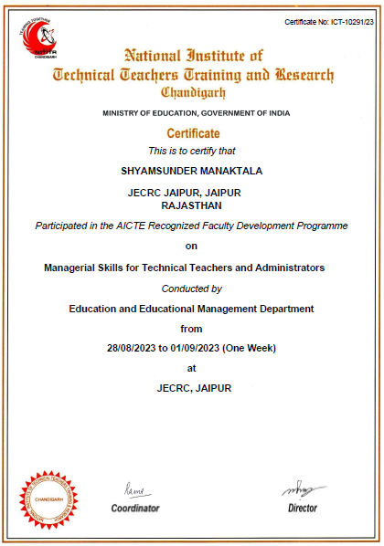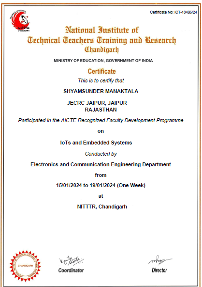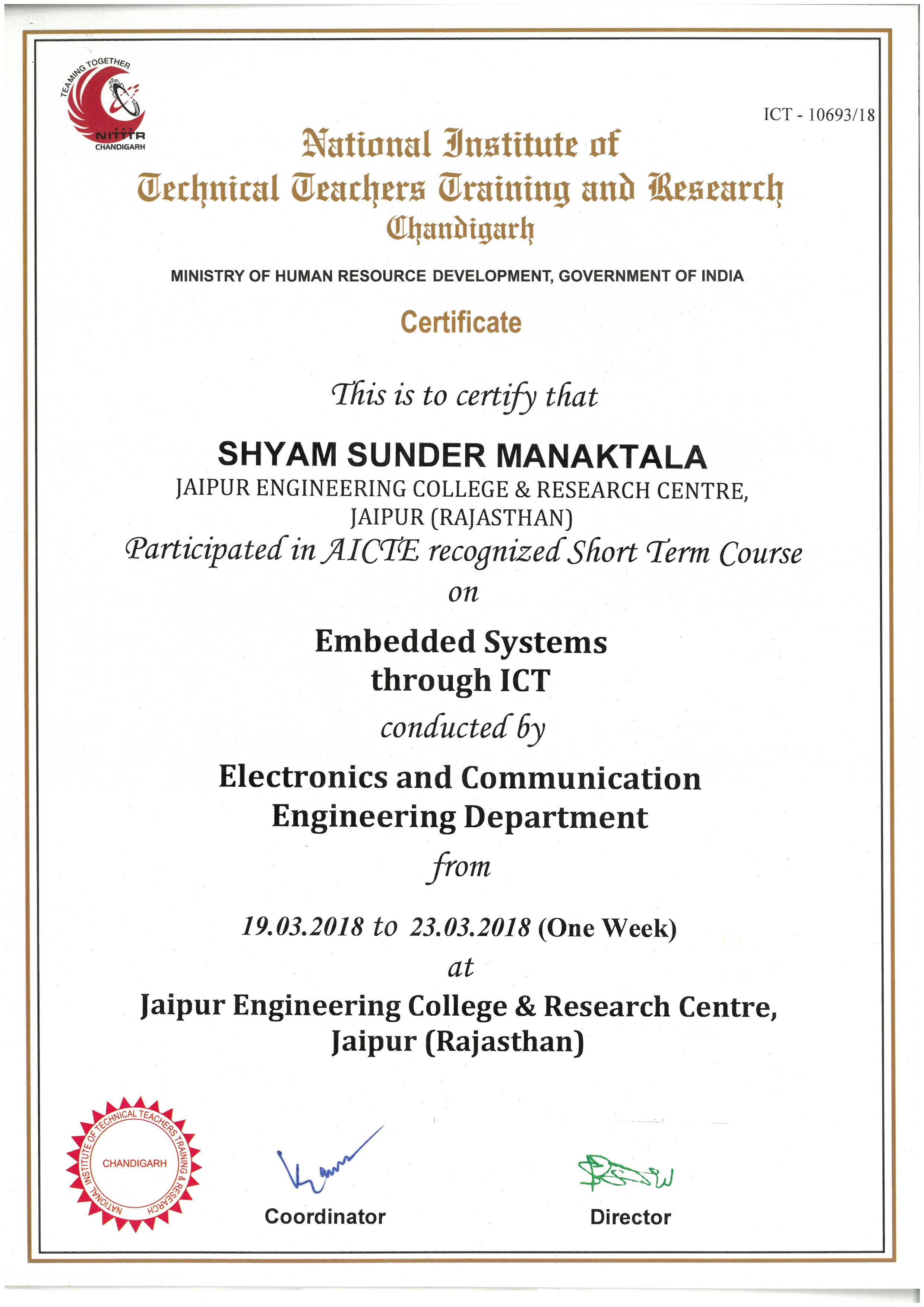5 Days TRAINING BY NITTTR CHANDIGARH
